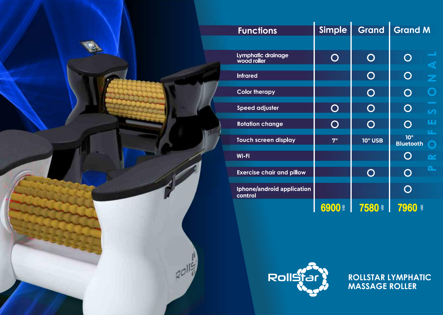 Vacuactivus RollStar – Lymphatic Drainage Massage Roller with Infrared & Chromotherapy