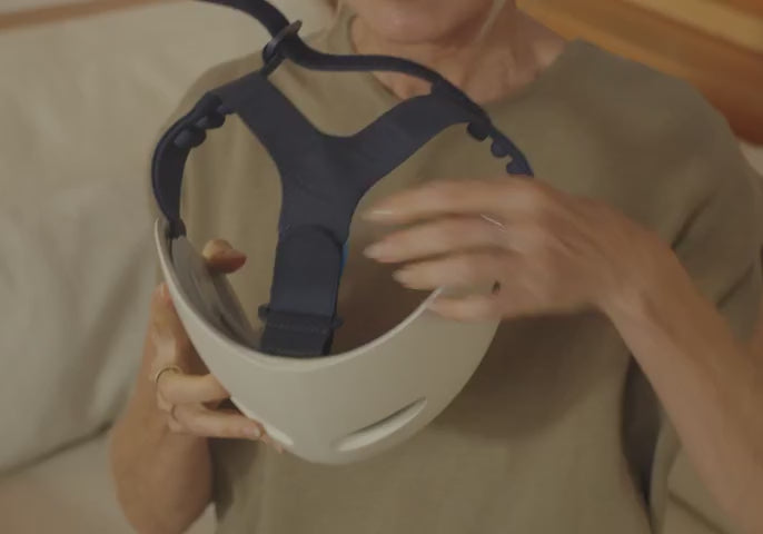- Design, cordless, adjustable straps, built-in vibration for scalp massage